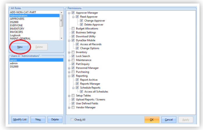 7. When finished adding Roles, click the OK button to close the Security Manager.
