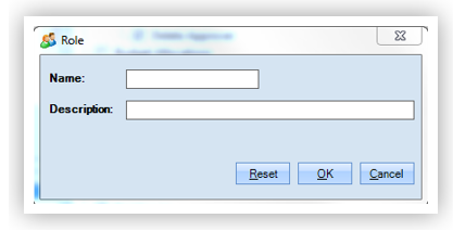 4. In the Role dialogue screen, enter the Name of the Role to be created, and