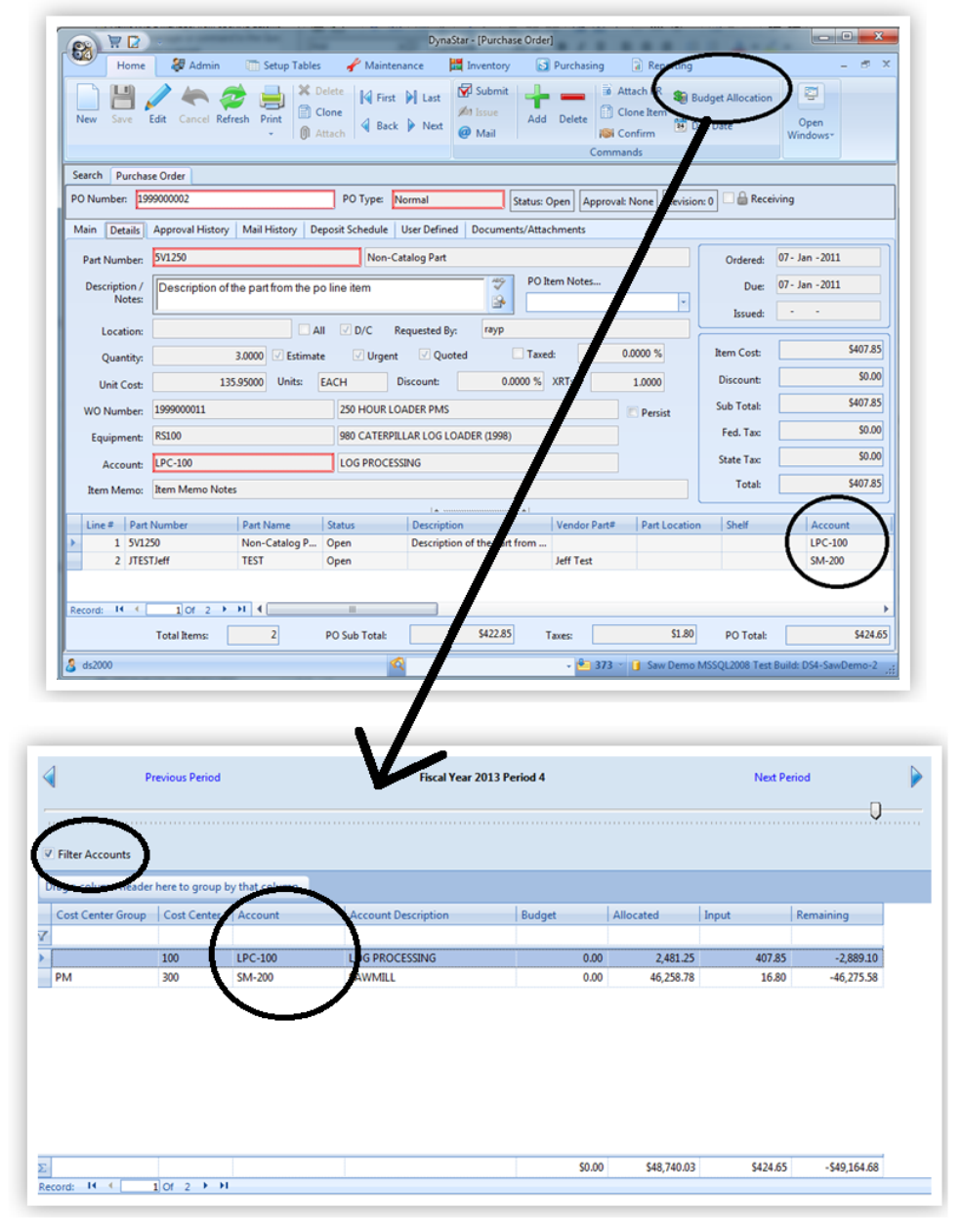 3. The Purchase Order Manager by clicking the toolbar icon Budget Allocations