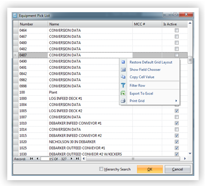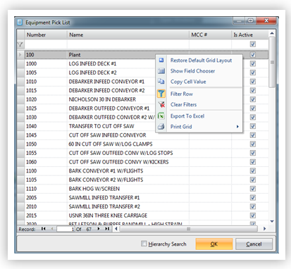 Most grids in DynaStar™, have a filter row. The filter row can be turned on or off by a user. In some parts of the application the filter row may be turned off by default. DynaStar™ stores each grid setting on a user-by-user basis. Turning a filter row on or off does not affect another user. Each user has their own grid preferences for each grid in the application. (see also Using the DynaStar™ Grid Filter Row)