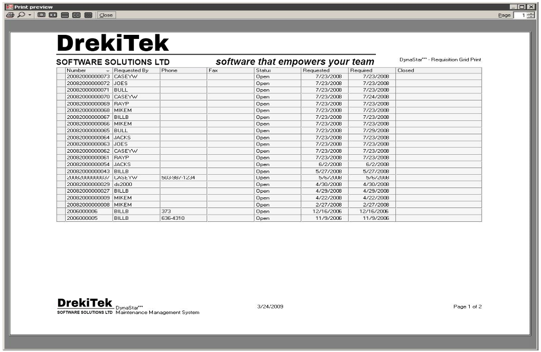 Grid data in DynaStar™ can be printed in exactly the way it is ordered on the grid. The grid can be printed in either portrait or landscape mode.