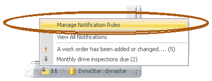 1. Click Manage Notification Rules from the Notification Menu on the Status Bar.