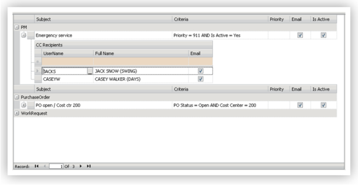 Changes to existing notifications can be made — for example, changing the list of people who are copied on the notification, or temporarily deactivating a notification, or deleting a notification that's not needed any more.