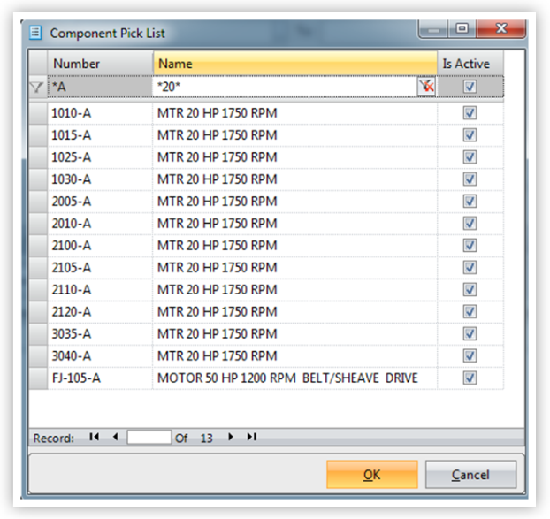 2. Auto Filtering the Pick List Lookup. Enter text into the criteria field and use the DynaStar Wildcard (*), then click the [...] Pick List button. In the example below to search for all records beginning with the number 103, enter 103*