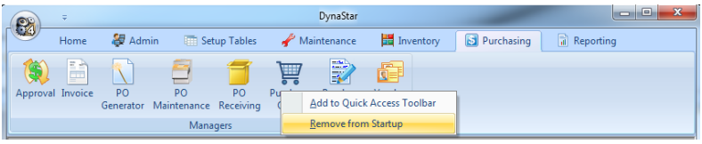 If a user has set a Manager to automatically open when logging into DynaStar™, then decides they no longer want that Manager to automatically open, the user can turn off their user preference, by following these simple steps: